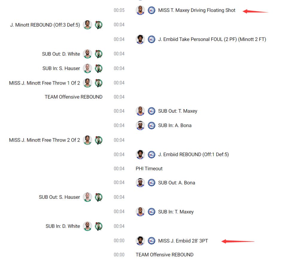 实际上这场比赛真的不能去怪恩比德28英尺的三分球未能命中,这种绝杀球本来就该为马克西或者埃奇库姆画战术,因为在终场前5秒也是马克西要执行反超球,只可惜马克西未能命中,如果马克西反超一球命中,这场比赛就拿下了,也没有恩比德的丢三分绝杀。