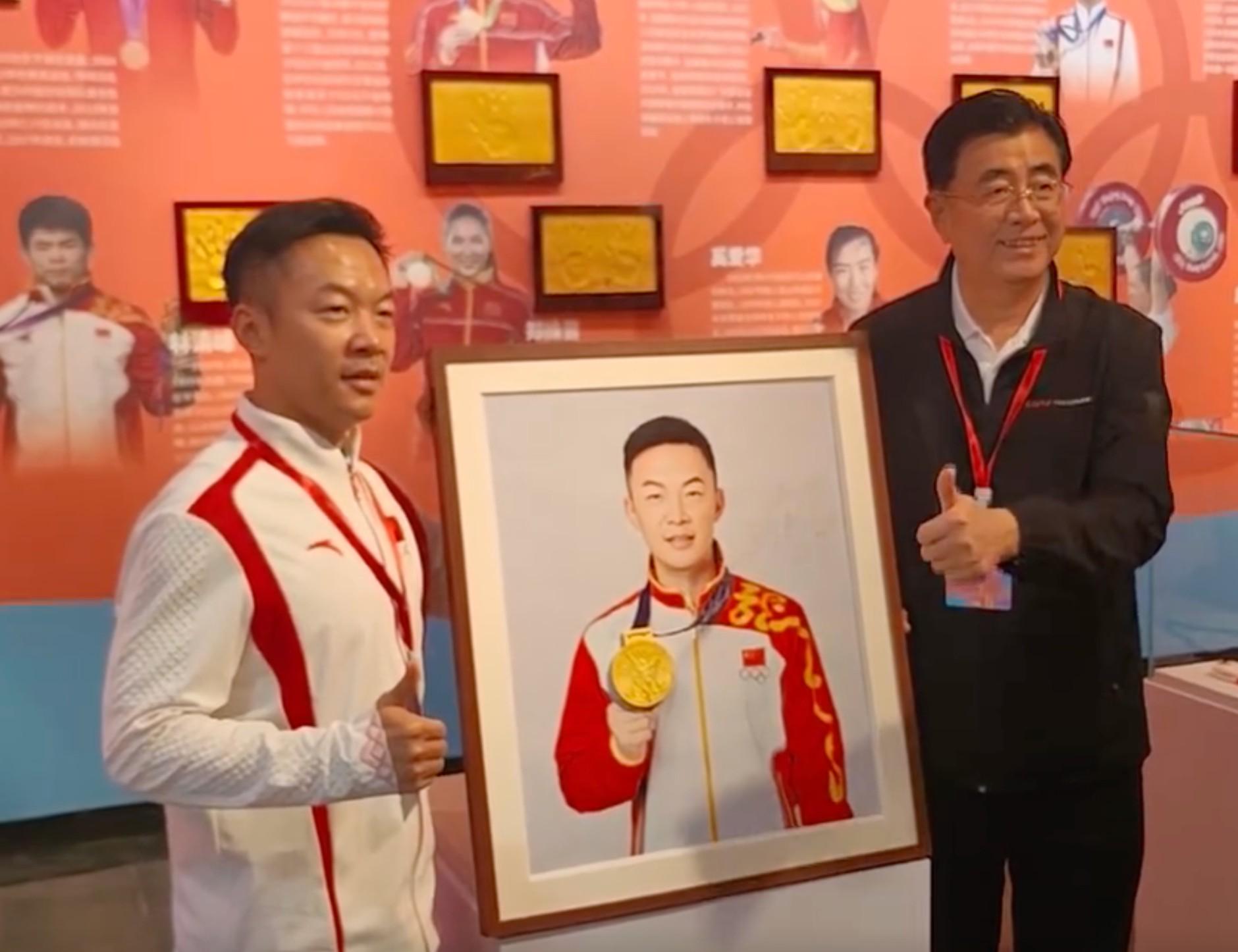 宋凯出席中国体育美术作品展览,与奥运冠军金牌合影